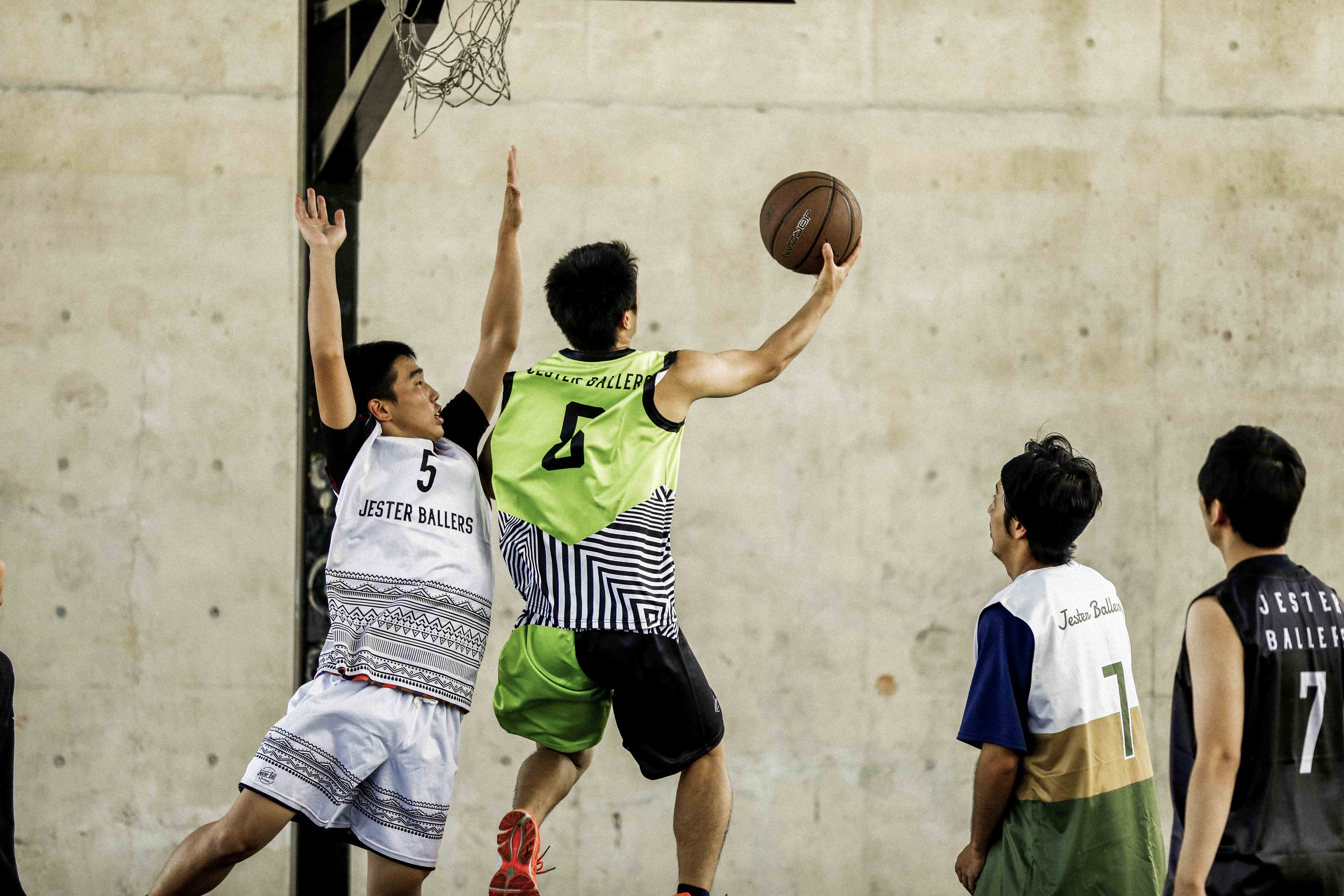 ストリートバスケでは、よく相手を翻弄したり、裏をかいたりする技を駆使して、 “魅せる”プレイが繰り広げられます。それらのストリートボーラーのバスケットをココロから愉しむ姿と、観客をおもしろ可笑しく魅了するピエロとを、重ね合わせました。